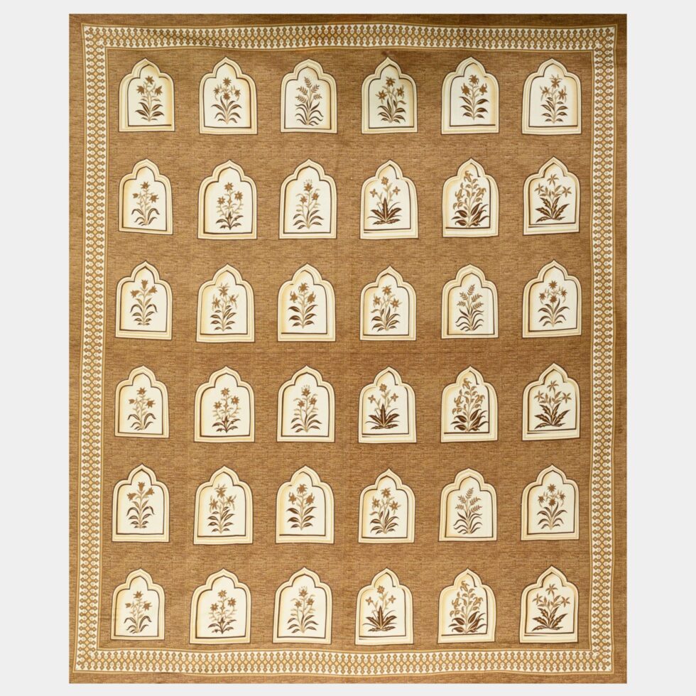 Beige Jaipuri-Style Floral Printed Double Bedsheet With Two Matching Pillow Covers