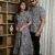 Couple Matching Blue Cotton Anarkali Midi Dress and Shirt Set ? Geometric Block Print