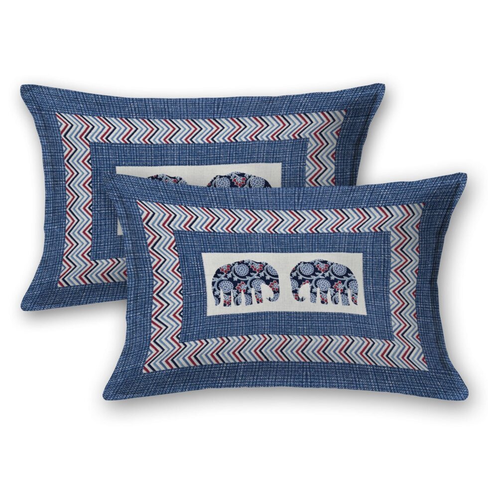 Jaipuri Printed 100% Pure Cotton Double Bedsheet With Two Pillow Cover (Blue)