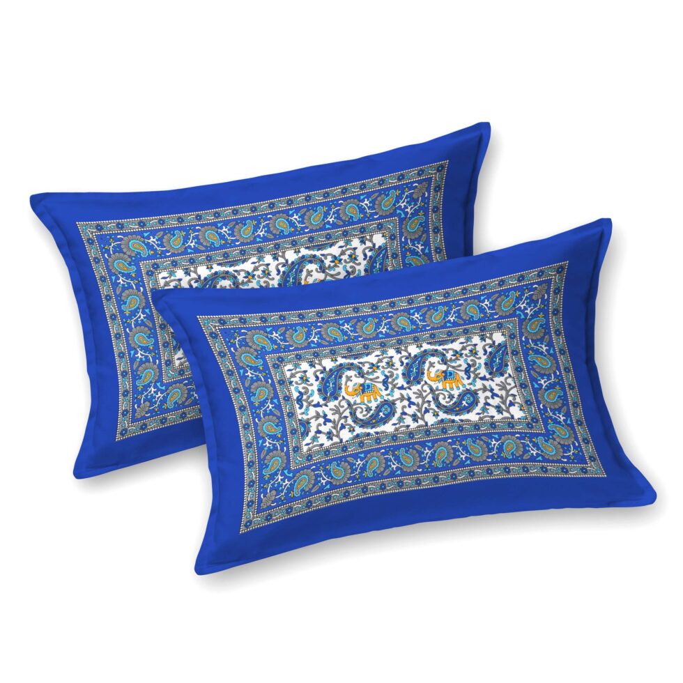 Jaipuri Stylish Floral Printed Double Bed Bedsheet With Two Pillow Cover (Blue)