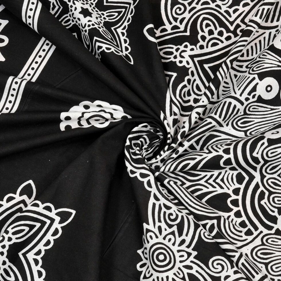 Jaipuri Stylish Mandala Printed Double Bed Bedsheet With Two Pillow Cover (Black)