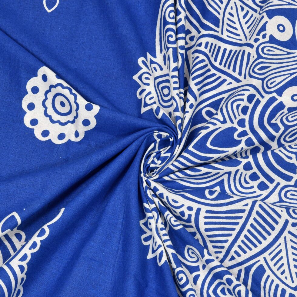 Jaipuri Stylish Mandala Printed Double Bed Bedsheet With Two Pillow Cover (Blue)