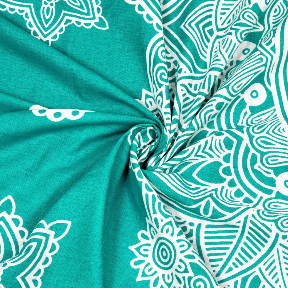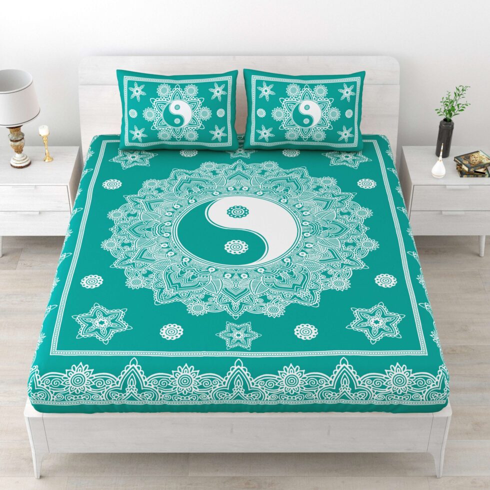 Jaipuri Stylish Mandala Printed Double Bed Bedsheet With Two Pillow Cover (Green And white)