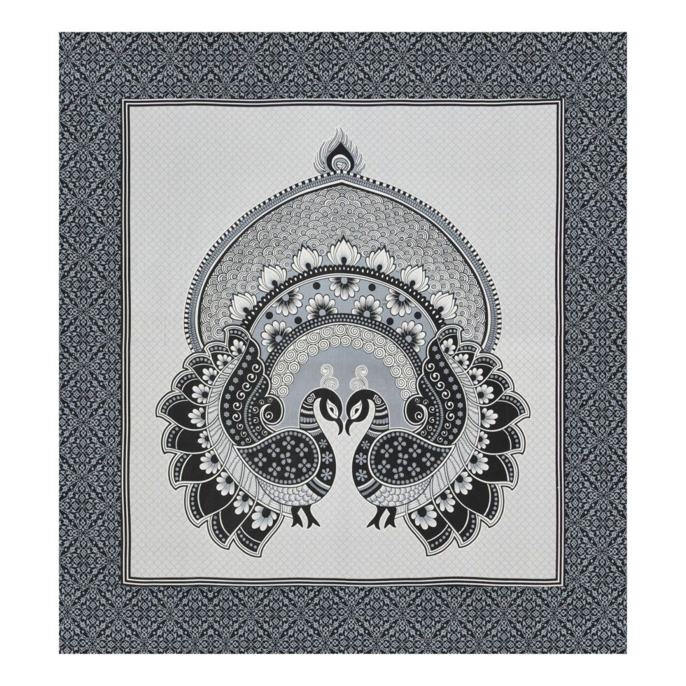 Jaipuri Stylish Peacock Printed Double Bed Bedsheet With Two Pillow Cover (Black)