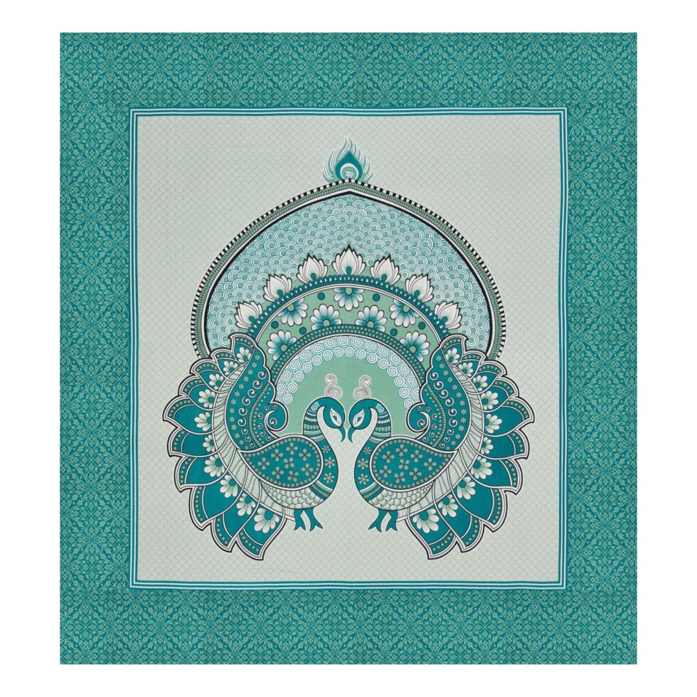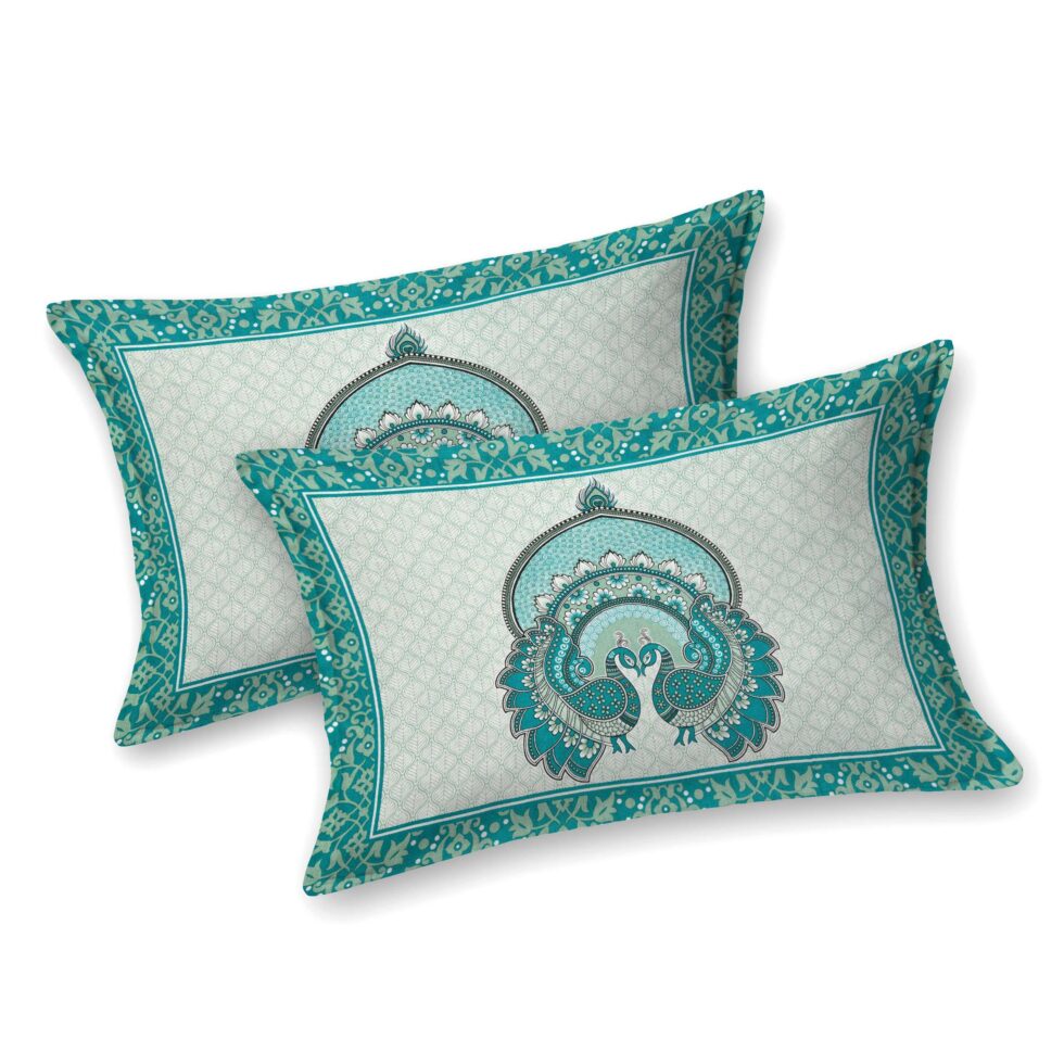 Jaipuri Stylish Peacock Printed Double Bed Bedsheet With Two Pillow Cover (Turquoise)