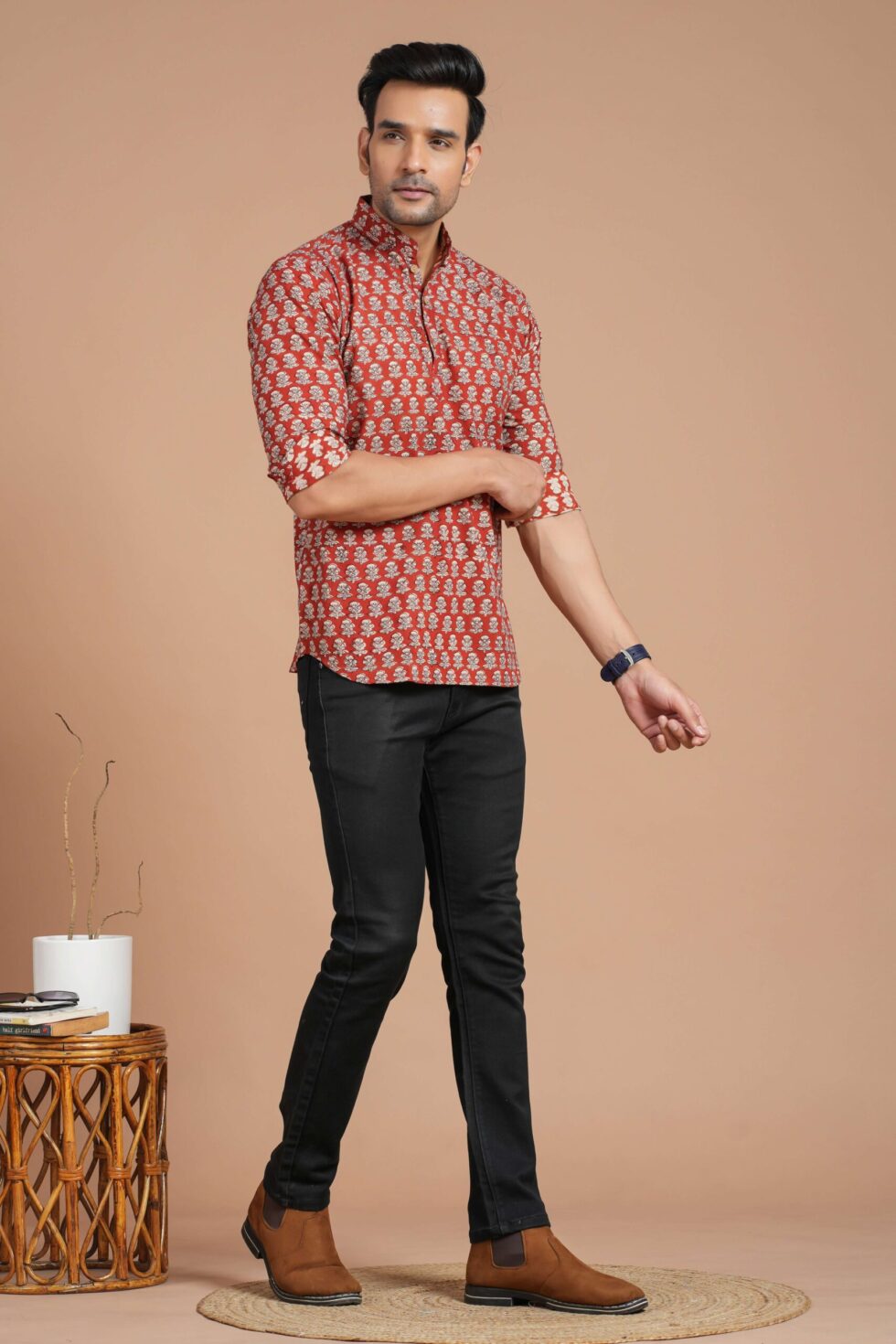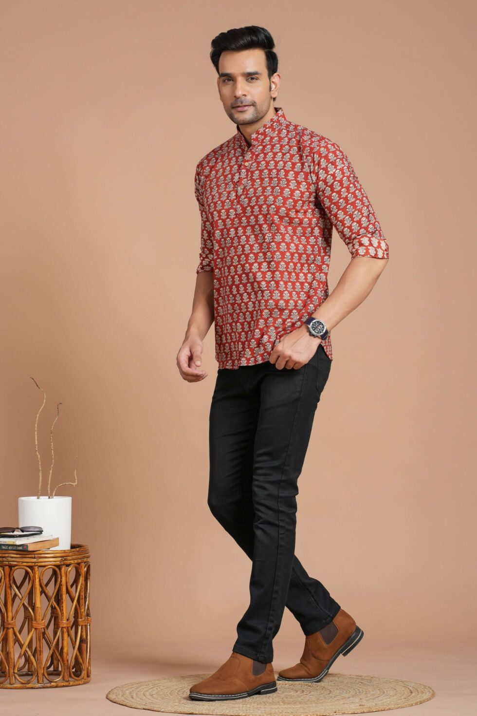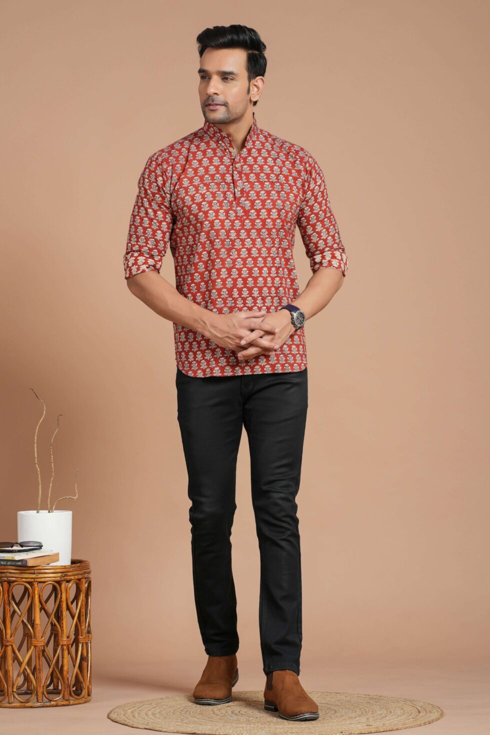 Men’s Cotton Red Printed Kurta ? Casual & Festive Daily Wear
