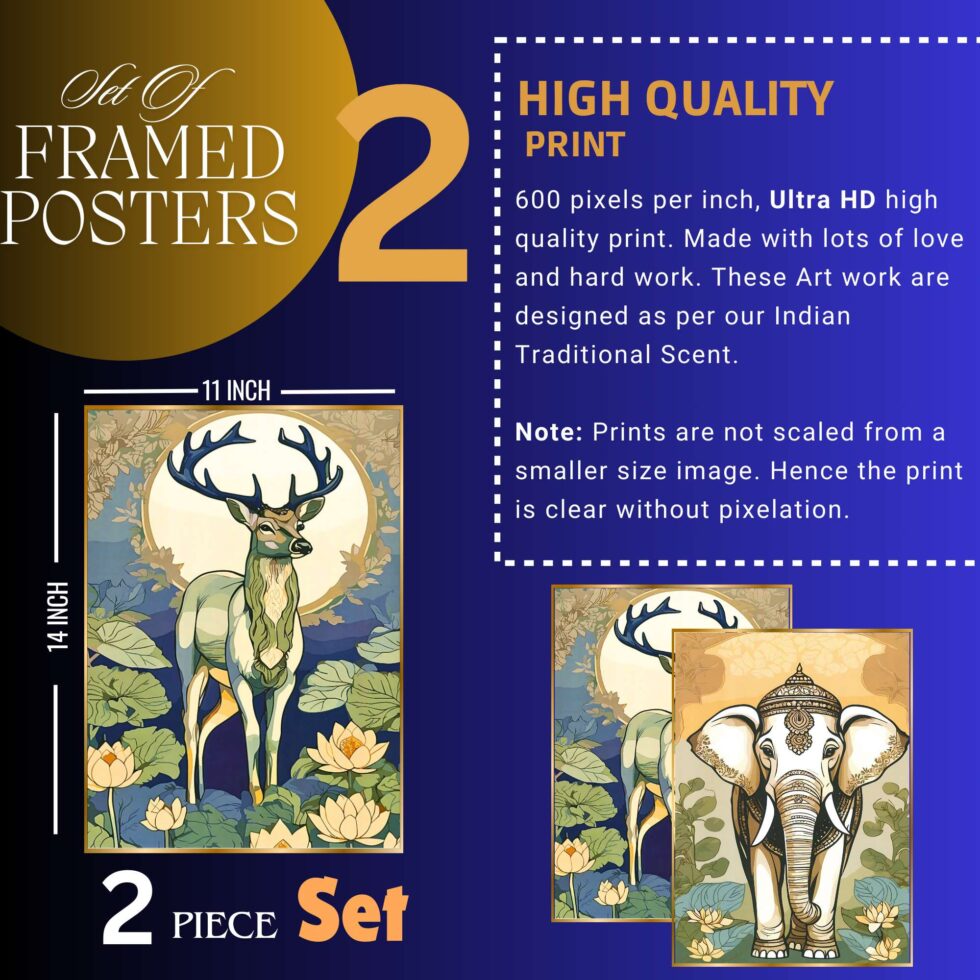 Set of Two Wall Paintings for Wall Dacoration Golden Framed Wall Paintings for Living Room & Bedroom Wall Art for Home Decoration & Office Wall Décor (14×11 inch CH-GD2-14)