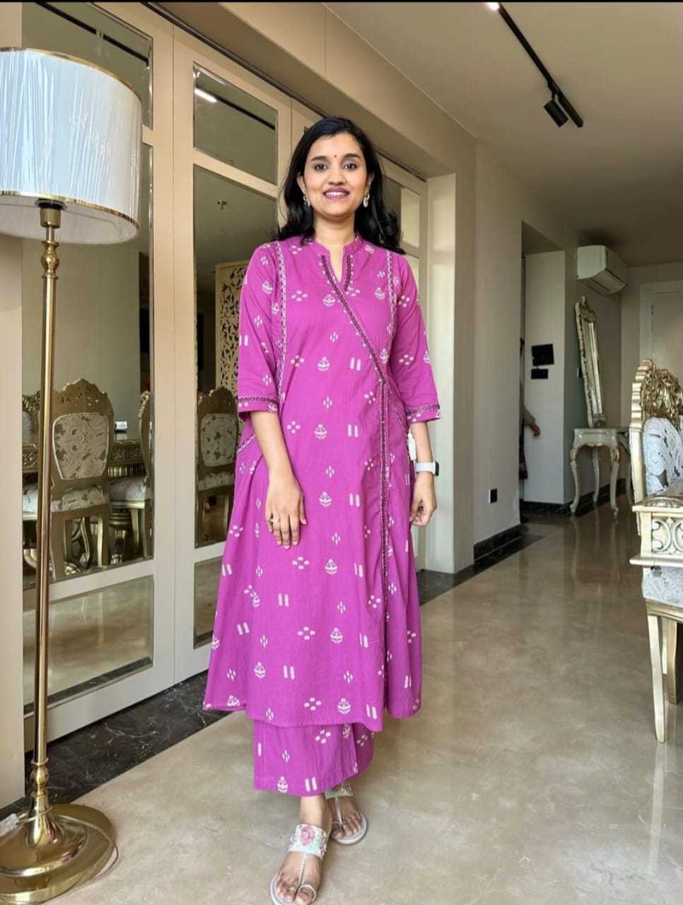 Women’s Cotton Embroidered Anarkali Kurti with Pant and Dupatta Set