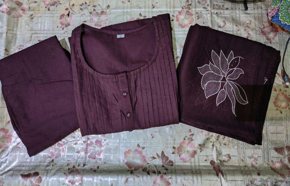 3 Piece Kurti with Pant and Dupatta Set. Designed for comfort and style, this outfit offers a perfect combination of tradition and modern fashion. The stylish kurti, paired with matching pants and a graceful dupatta, makes it an ideal choice for festive occasions, office wear, family gatherings, or casual outings. Its smart design and easy-to-wear fit ensure you look effortlessly classy all day long.