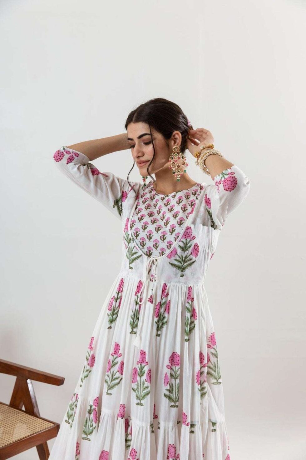 Women’s Cotton Floral Printed Long Anarkali Kurti with Pant and Dupatta