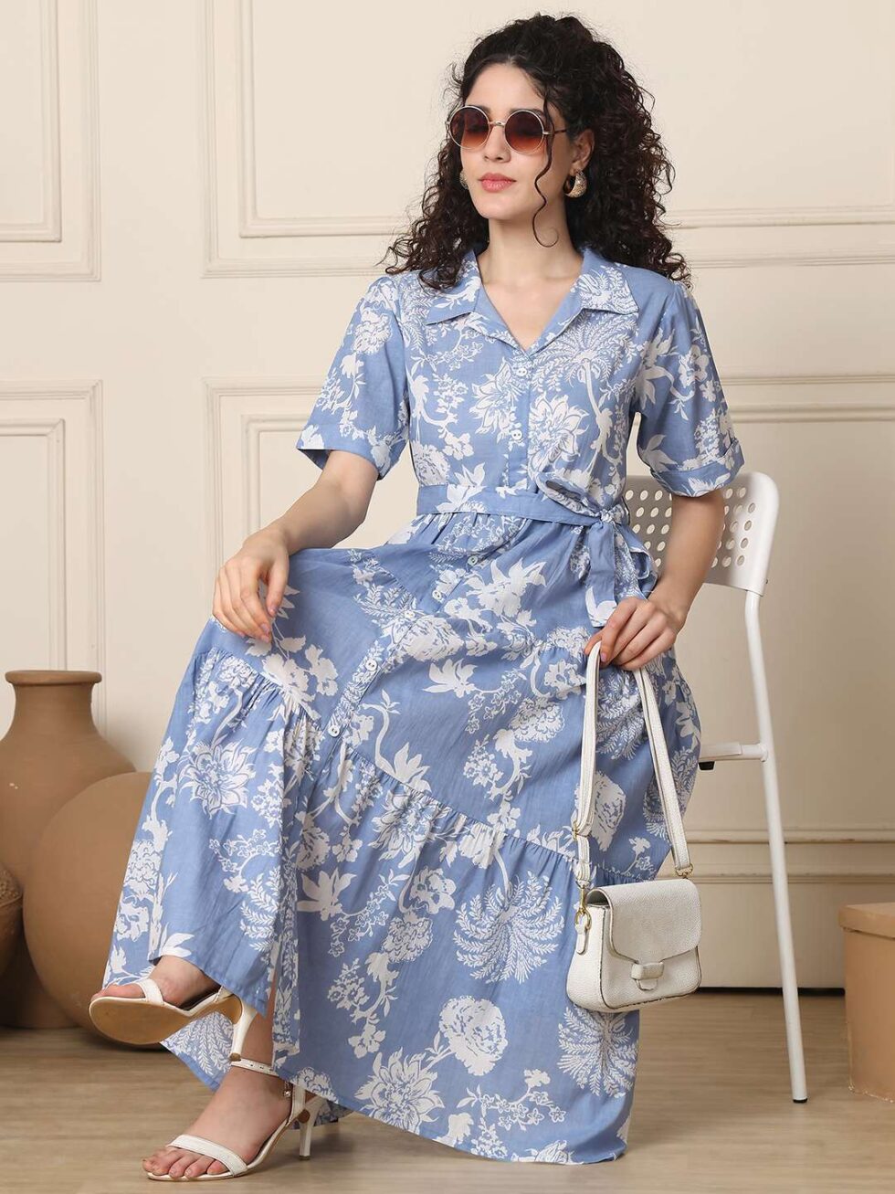 Women’s Cotton A-line Maxi Dress, featuring a beautiful all-over floral print. Designed with short sleeves and a flattering flared silhouette, this gown-style dress is both breathable and stylish. Crafted from soft cotton, it’s the perfect choice for summer days, casual outings, vacations, or brunch dates.