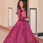 Women’s Festive Berry Purple Printed Anarkali Gown with Intricate Zari Work & Embellished Yoke β Perfect for Traditional & Celebration Wear