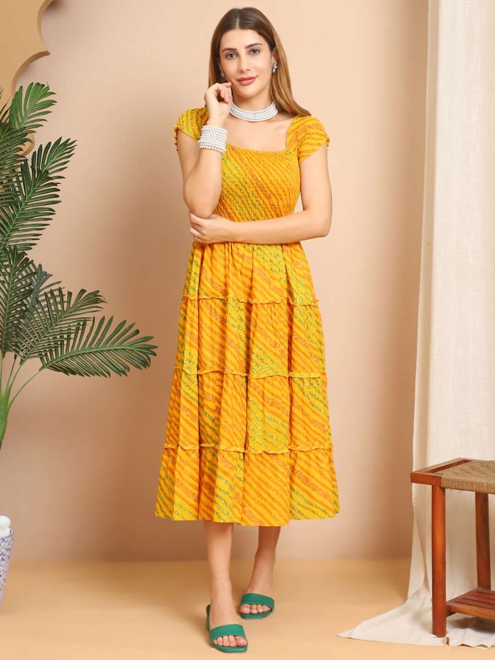 Women’s Viscos Rayon Printed Off Shoulder Midi Dress For Summer And Casual Wear