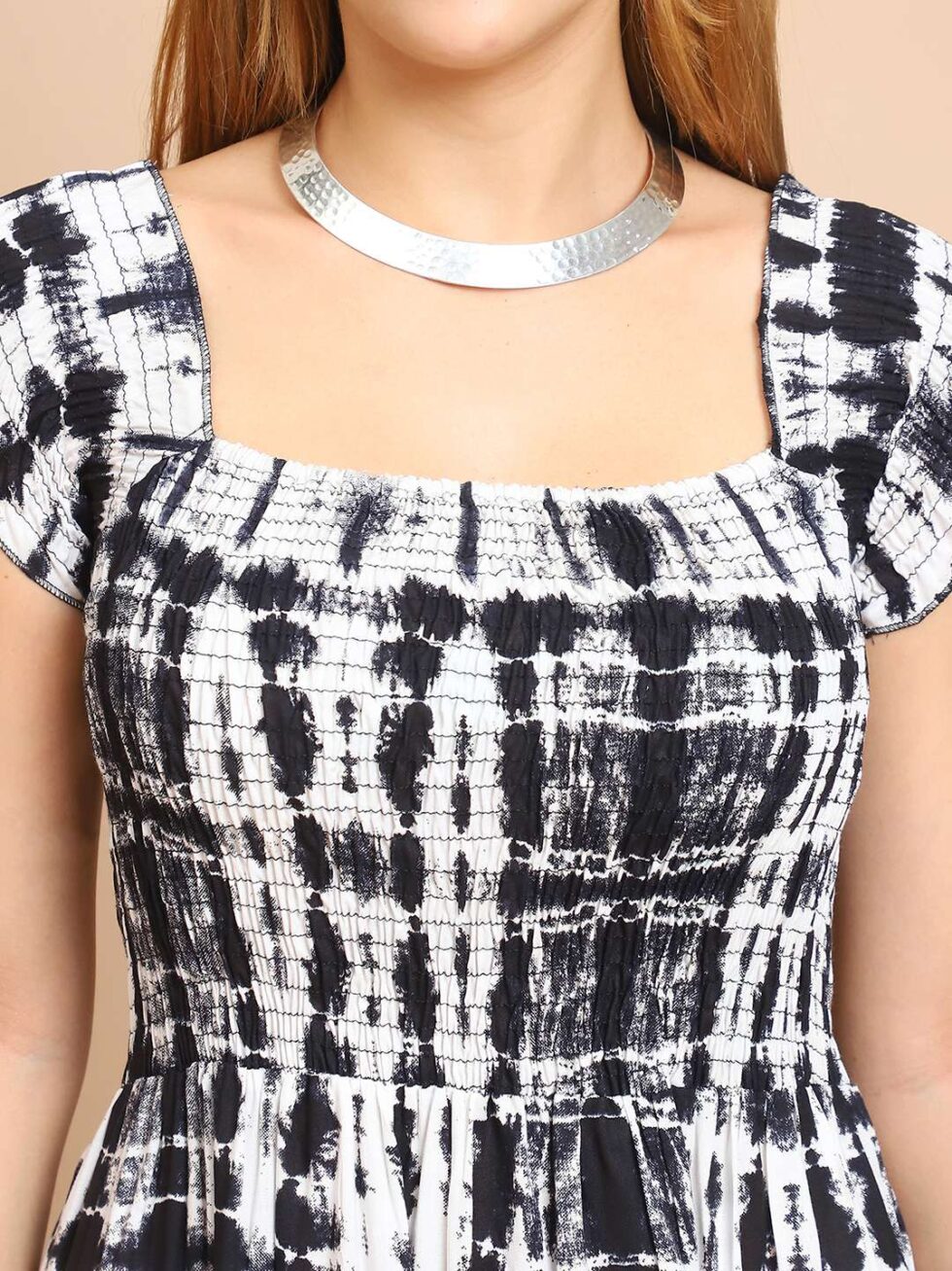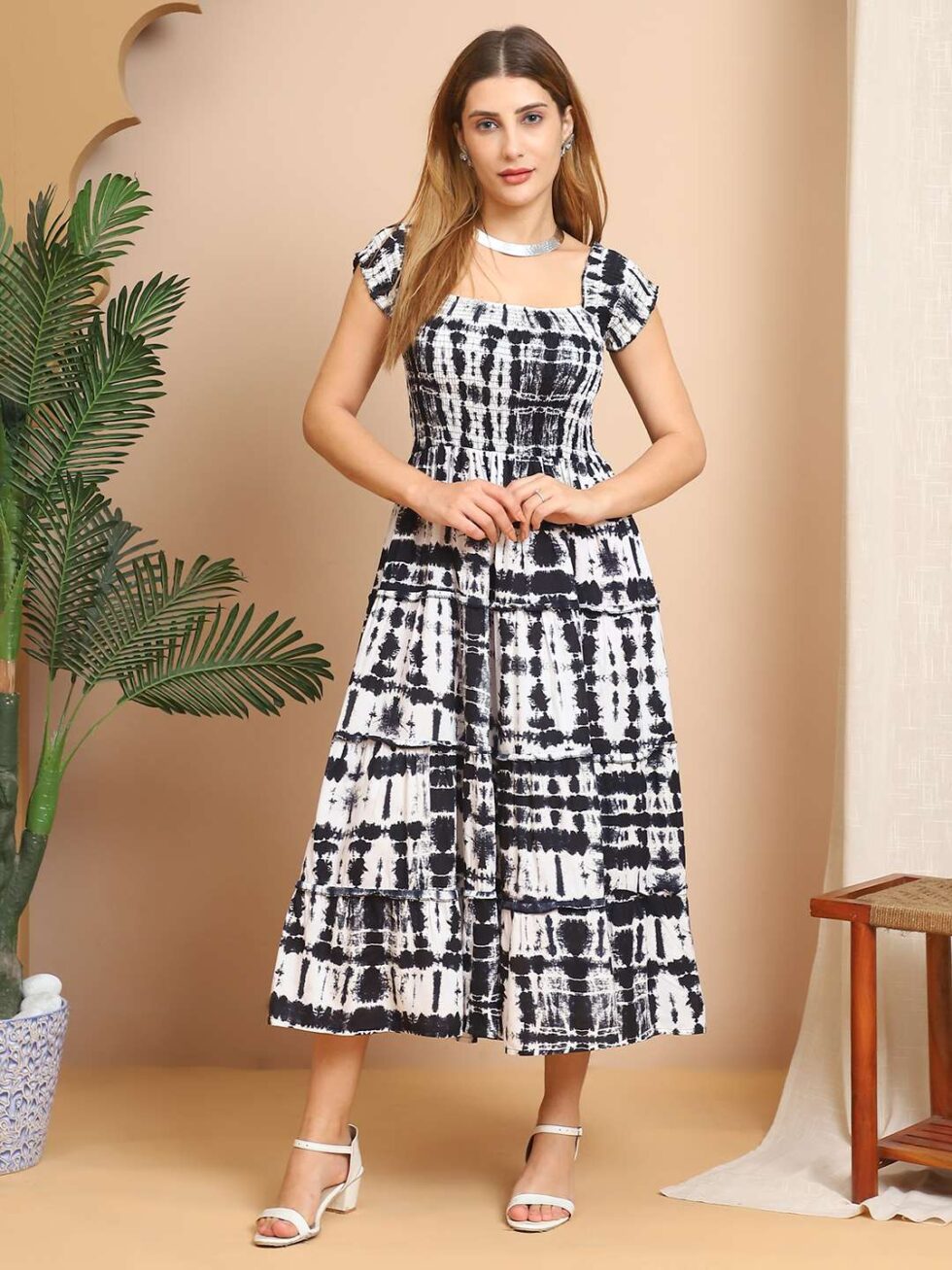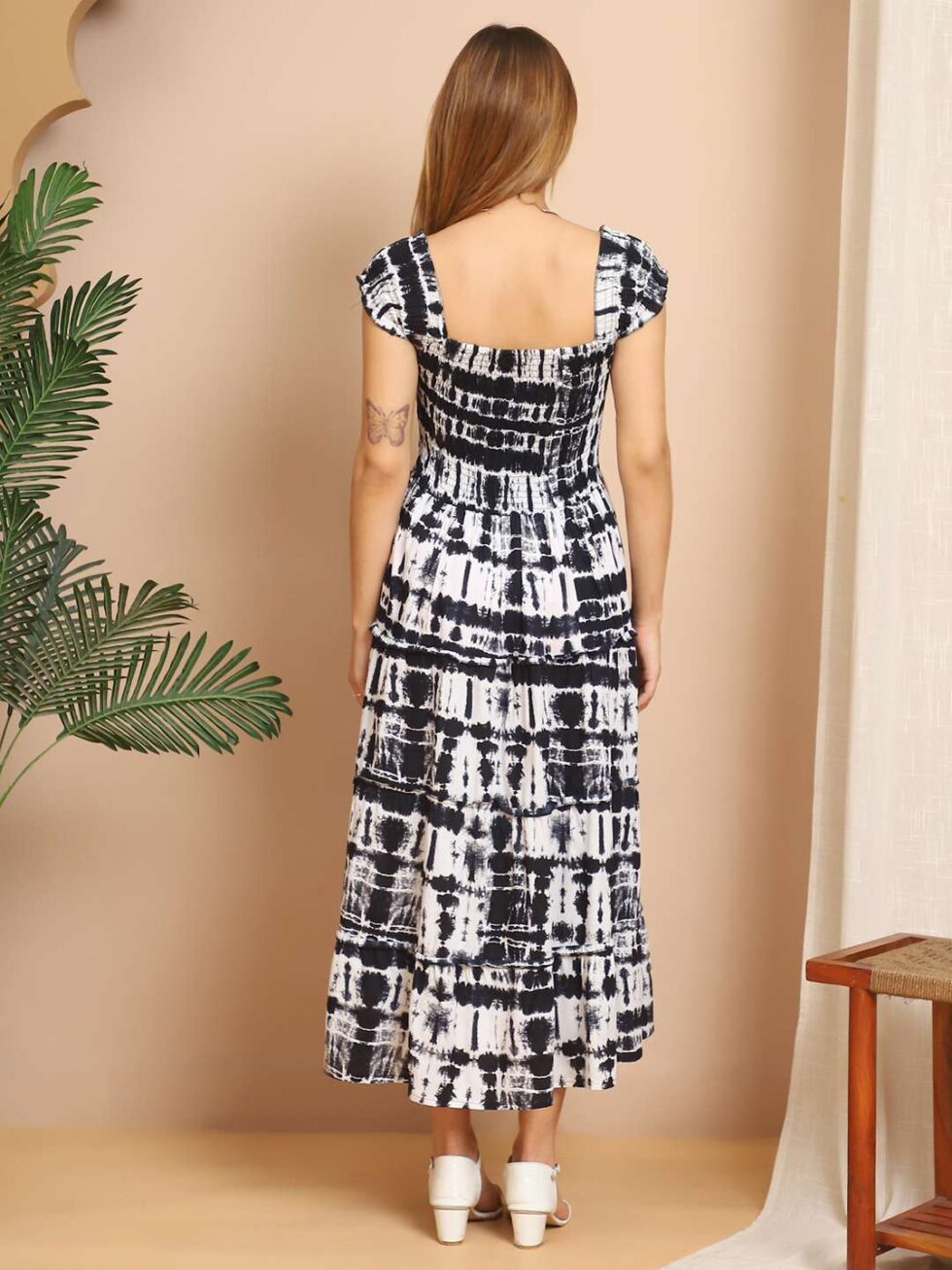 Women’s Viscos Rayon Printed Off Shoulder Midi Dress For Summer And Casual Wear (Black White)