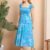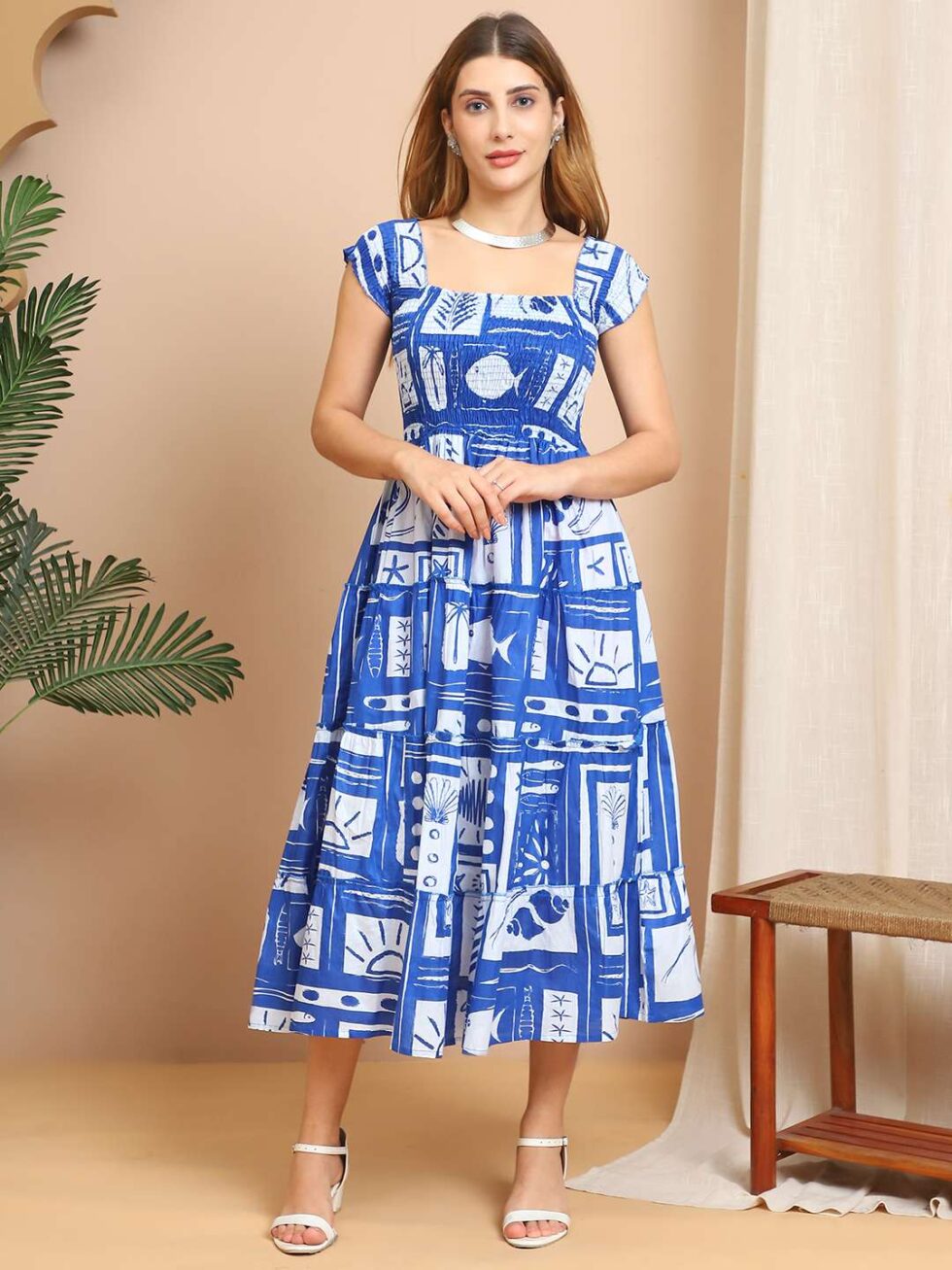 Women’s Viscos Rayon Printed Off Shoulder Midi Dress For Summer And Casual Wear (Blue White)