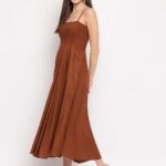Women’s Viscose Rayon Solid Shoulder Straps Sleeveless Flared Gown Drees (Brown)